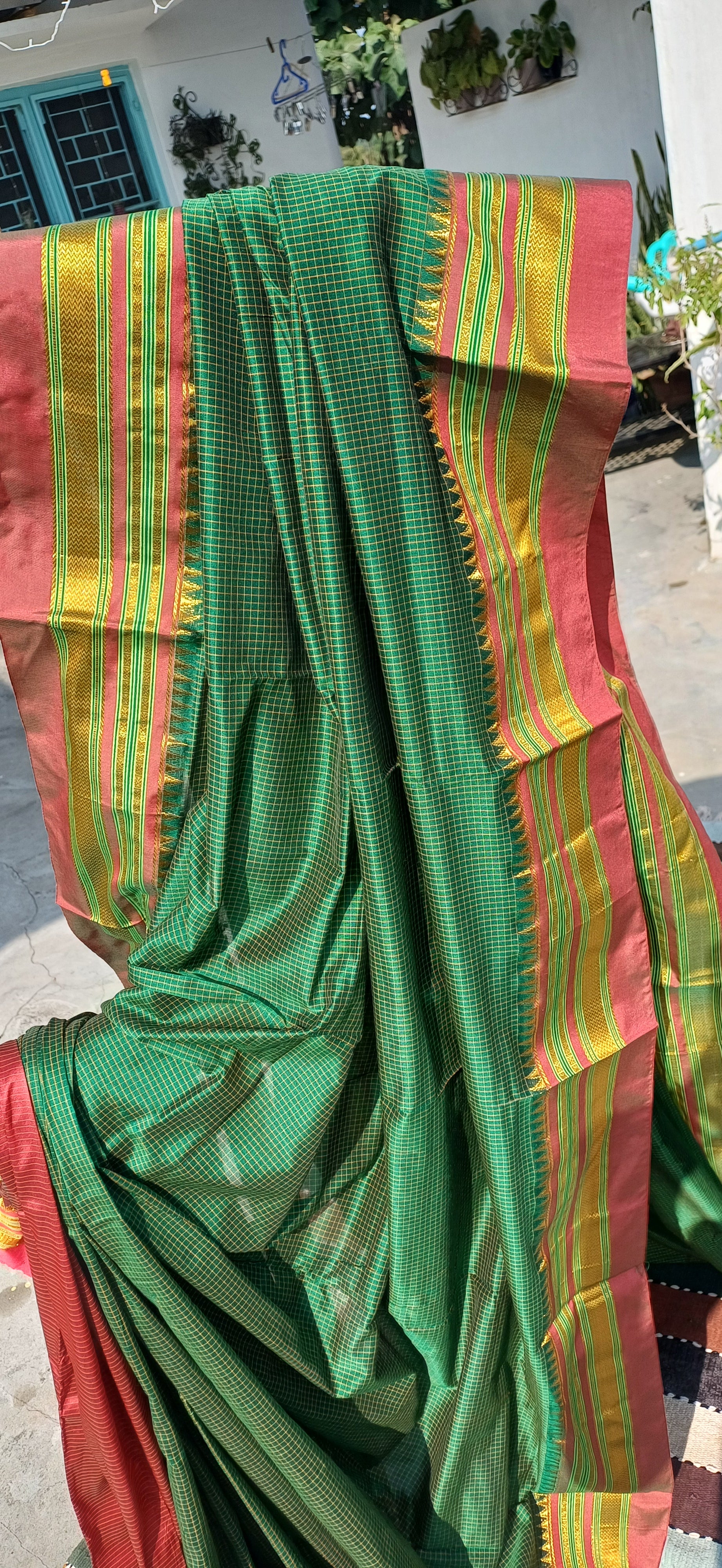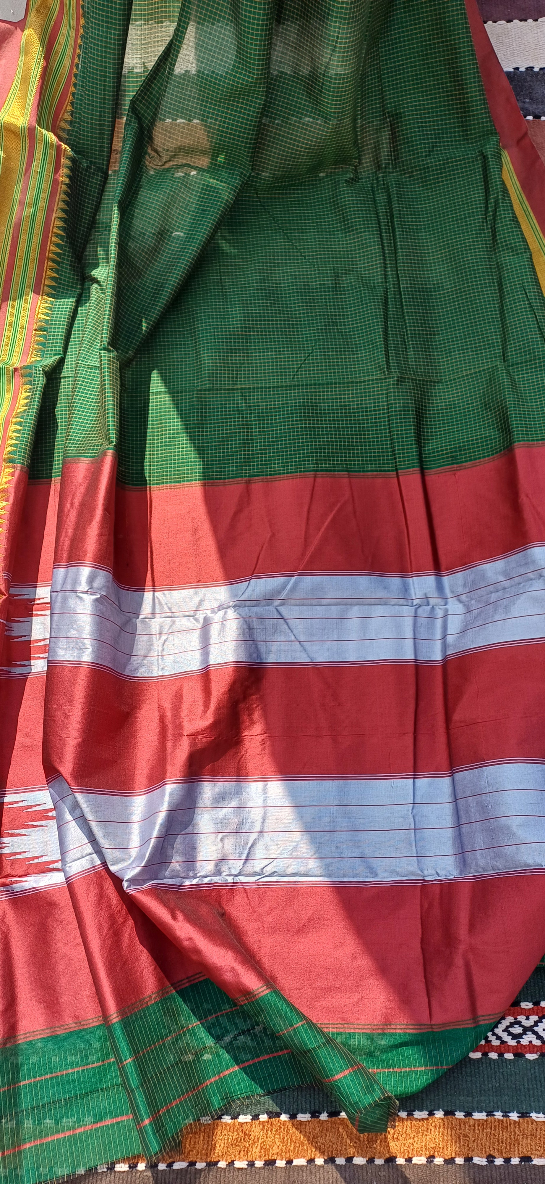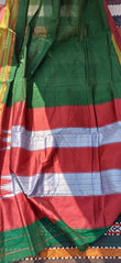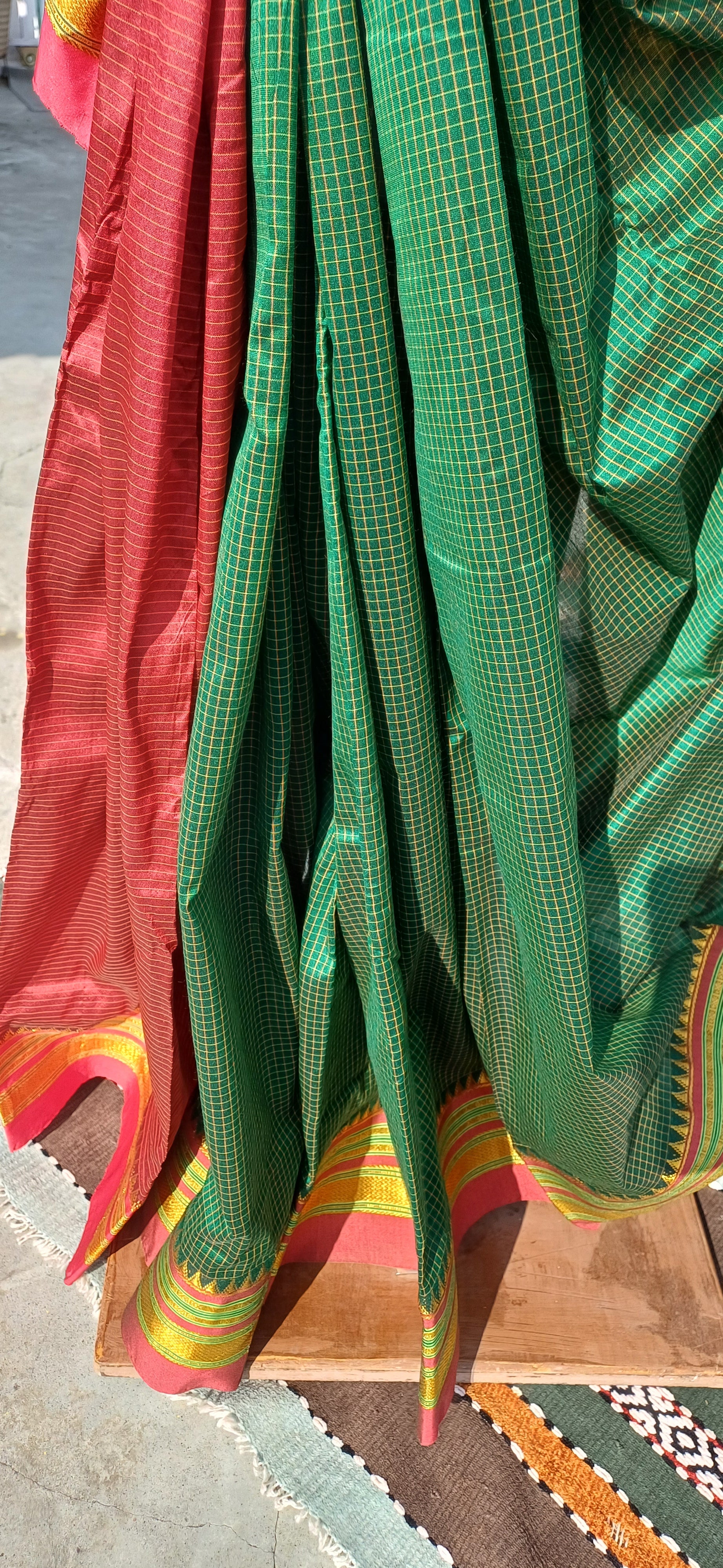 Cotton Saree- Green Body with Red & Yellow Ilkal Border